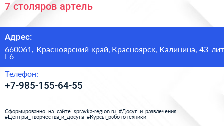 7 столяров, артель по адресу 660061, Красноярский край, Красноярск, Калинина, 43 лит Г6 в дальнейшем Организация, размещена в следующих категориях: