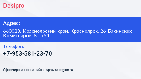Desipro по адресу 660023, Красноярский край, Красноярск, 26 Бакинских Комиссаров, 8 ст64 в дальнейшем Организация, размещена в следующих категориях:
