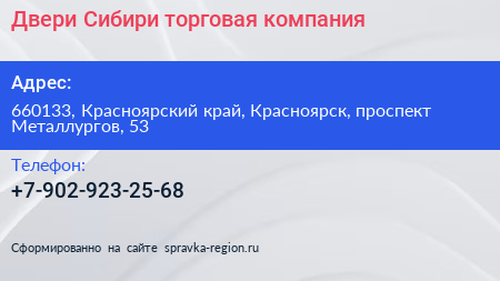 Двери Сибири, торговая компания по адресу 660133, Красноярский край, Красноярск, проспект Металлургов, 53 в дальнейшем Организация, размещена в следующих категориях: