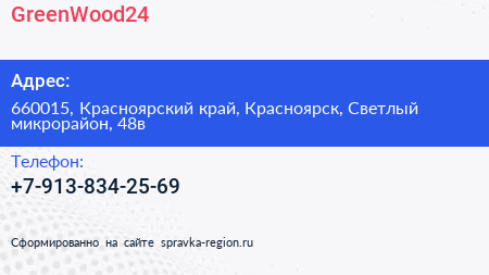 GreenWood24 по адресу 660015, Красноярский край, Красноярск, Светлый микрорайон, 48в в дальнейшем Организация, размещена в следующих категориях: