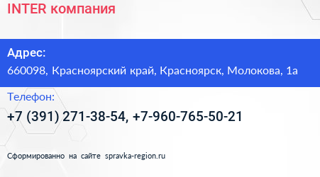 INTER, компания по адресу 660098, Красноярский край, Красноярск, Молокова, 1а в дальнейшем Организация, размещена в следующих категориях: