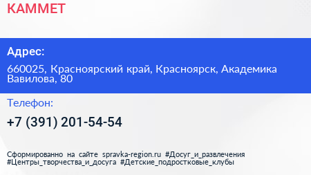 КАММЕТ по адресу 660025, Красноярский край, Красноярск, Академика Вавилова, 80 в дальнейшем Организация, размещена в следующих категориях: