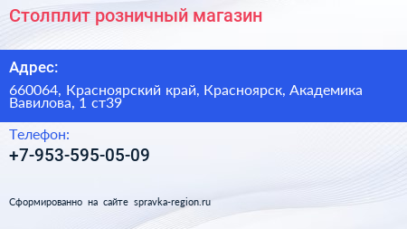 Столплит, розничный магазин по адресу 660064, Красноярский край, Красноярск, Академика Вавилова, 1 ст39 в дальнейшем Организация, размещена в следующих категориях: