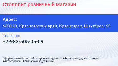 Столплит, розничный магазин по адресу 660020, Красноярский край, Красноярск, Шахтёров, 65 в дальнейшем Организация, размещена в следующих категориях: