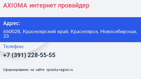 AXIOMA, интернет-провайдер по адресу 660028, Красноярский край, Красноярск, Новосибирская, 33 в дальнейшем Организация, размещена в следующих категориях:
