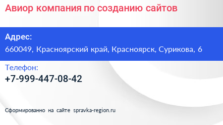 Авиор, компания по созданию сайтов по адресу 660049, Красноярский край, Красноярск, Сурикова, 6 в дальнейшем Организация, размещена в следующих категориях: