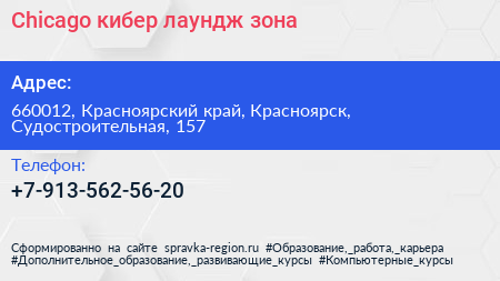 Chicago, кибер-лаундж-зона по адресу 660012, Красноярский край, Красноярск, Судостроительная, 157 в дальнейшем Организация, размещена в следующих категориях:
