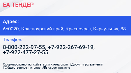 ЕА ТЕНДЕР по адресу 660020, Красноярский край, Красноярск, Караульная, 88 в дальнейшем Организация, размещена в следующих категориях: