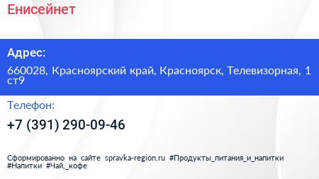 Енисейнет по адресу 660028, Красноярский край, Красноярск, Телевизорная, 1 ст9 в дальнейшем Организация, размещена в следующих категориях: