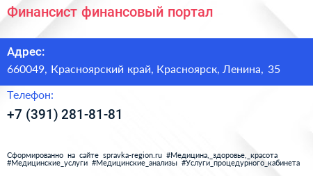 Финансист, финансовый портал по адресу 660049, Красноярский край, Красноярск, Ленина, 35 в дальнейшем Организация, размещена в следующих категориях: