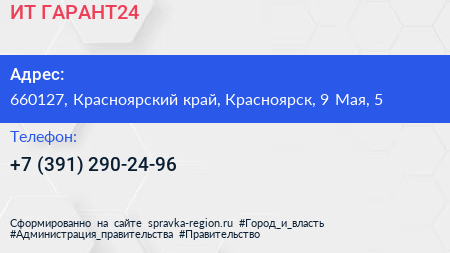 ИТ-ГАРАНТ24 по адресу 660127, Красноярский край, Красноярск, 9 Мая, 5 в дальнейшем Организация, размещена в следующих категориях: