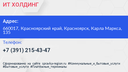ИТ-ХОЛДИНГ по адресу 660017, Красноярский край, Красноярск, Карла Маркса, 135 в дальнейшем Организация, размещена в следующих категориях: