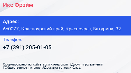 Икс-Фрэйм по адресу 660077, Красноярский край, Красноярск, Батурина, 32 в дальнейшем Организация, размещена в следующих категориях: