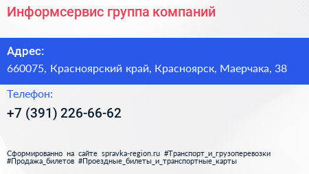 Информсервис, группа компаний по адресу 660075, Красноярский край, Красноярск, Маерчака, 38 в дальнейшем Организация, размещена в следующих категориях: