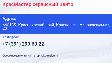 КрасМастер, сервисный центр по адресу 660135, Красноярский край, Красноярск, Аэровокзальная, 23 в дальнейшем Организация, размещена в следующих категориях: