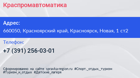 Краспромавтоматика по адресу 660050, Красноярский край, Красноярск, Новая, 1 ст2 в дальнейшем Организация, размещена в следующих категориях: