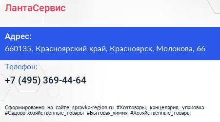 ЛантаСервис по адресу 660135, Красноярский край, Красноярск, Молокова, 66 в дальнейшем Организация, размещена в следующих категориях: