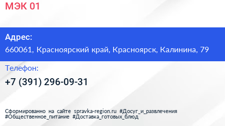 МЭК-01 по адресу 660061, Красноярский край, Красноярск, Калинина, 79 в дальнейшем Организация, размещена в следующих категориях: