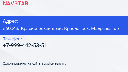 NAVSTAR по адресу 660048, Красноярский край, Красноярск, Маерчака, 65 в дальнейшем Организация, размещена в следующих категориях: