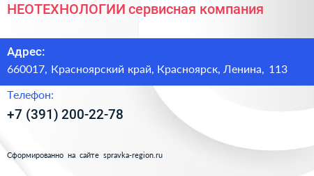 НЕОТЕХНОЛОГИИ, сервисная компания по адресу 660017, Красноярский край, Красноярск, Ленина, 113 в дальнейшем Организация, размещена в следующих категориях: