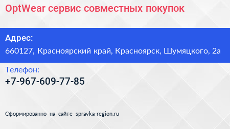 OptWear, сервис совместных покупок по адресу 660127, Красноярский край, Красноярск, Шумяцкого, 2а в дальнейшем Организация, размещена в следующих категориях: