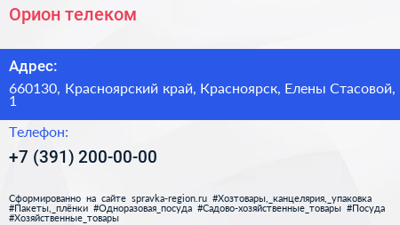 Орион телеком по адресу 660130, Красноярский край, Красноярск, Елены Стасовой, 1 в дальнейшем Организация, размещена в следующих категориях: