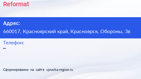Reformat по адресу 660017, Красноярский край, Красноярск, Обороны, 3в в дальнейшем Организация, размещена в следующих категориях: