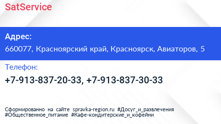SatService по адресу 660077, Красноярский край, Красноярск, Авиаторов, 5 в дальнейшем Организация, размещена в следующих категориях:
