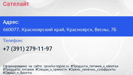 Сателайт по адресу 660077, Красноярский край, Красноярск, Весны, 7Б в дальнейшем Организация, размещена в следующих категориях: