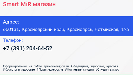 Smart MiR, магазин по адресу 660131, Красноярский край, Красноярск, Ястынская, 19а в дальнейшем Организация, размещена в следующих категориях: