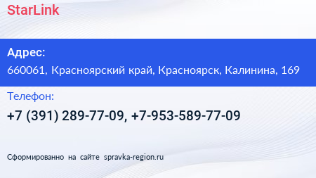 StarLink по адресу 660061, Красноярский край, Красноярск, Калинина, 169 в дальнейшем Организация, размещена в следующих категориях: