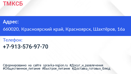 ТМКСБ по адресу 660020, Красноярский край, Красноярск, Шахтёров, 16а в дальнейшем Организация, размещена в следующих категориях: