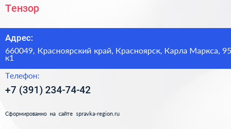Тензор по адресу 660049, Красноярский край, Красноярск, Карла Маркса, 95 к1 в дальнейшем Организация, размещена в следующих категориях:
