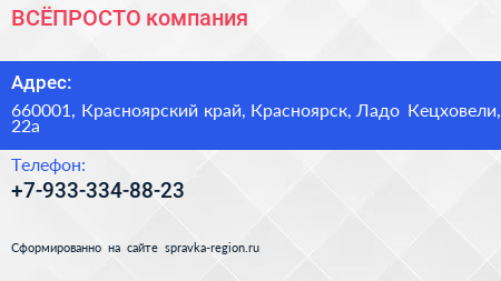 #ВСЁПРОСТО, компания по адресу 660001, Красноярский край, Красноярск, Ладо Кецховели, 22а в дальнейшем Организация, размещена в следующих категориях: