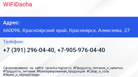WiFiDacha по адресу 660098, Красноярский край, Красноярск, Алексеева, 27 в дальнейшем Организация, размещена в следующих категориях: