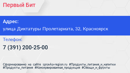Первый Бит по адресу улица Диктатуры Пролетариата, 32, Красноярск в дальнейшем Организация, размещена в следующих категориях: