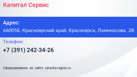 Капитал-Сервис по адресу 660058, Красноярский край, Красноярск, Ломоносова, 28 в дальнейшем Организация, размещена в следующих категориях: