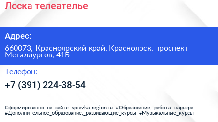 Лоска, телеателье по адресу 660073, Красноярский край, Красноярск, проспект Металлургов, 41Б в дальнейшем Организация, размещена в следующих категориях: