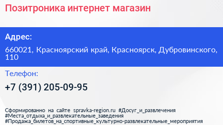 Позитроника, интернет-магазин по адресу 660021, Красноярский край, Красноярск, Дубровинского, 110 в дальнейшем Организация, размещена в следующих категориях: