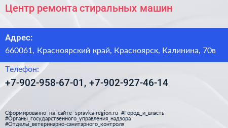 Центр ремонта стиральных машин по адресу 660061, Красноярский край, Красноярск, Калинина, 70в в дальнейшем Организация, размещена в следующих категориях: