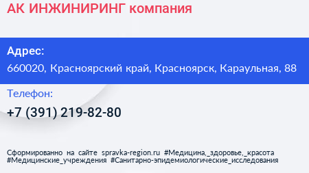 АК ИНЖИНИРИНГ, компания по адресу 660020, Красноярский край, Красноярск, Караульная, 88 в дальнейшем Организация, размещена в следующих категориях: