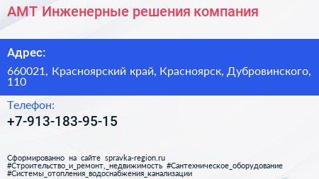 АМТ-Инженерные решения, компания по адресу 660021, Красноярский край, Красноярск, Дубровинского, 110 в дальнейшем Организация, размещена в следующих категориях: