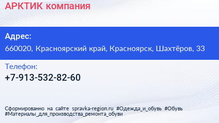 АРКТИК, компания по адресу 660020, Красноярский край, Красноярск, Шахтёров, 33 в дальнейшем Организация, размещена в следующих категориях: