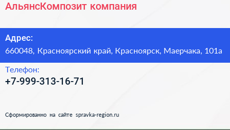 АльянсКомпозит, компания по адресу 660048, Красноярский край, Красноярск, Маерчака, 101а в дальнейшем Организация, размещена в следующих категориях:
