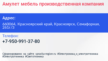 Амулет-мебель, производственная компания по адресу 660064, Красноярский край, Красноярск, Семафорная, 261г/3 в дальнейшем Организация, размещена в следующих категориях: