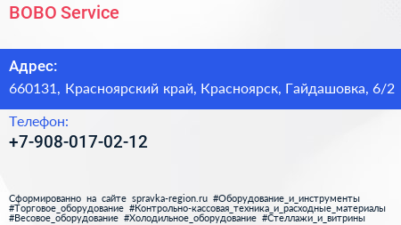 BOBO Service по адресу 660131, Красноярский край, Красноярск, Гайдашовка, 6/2 в дальнейшем Организация, размещена в следующих категориях: