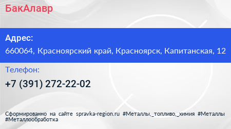 БакАлавр по адресу 660064, Красноярский край, Красноярск, Капитанская, 12 в дальнейшем Организация, размещена в следующих категориях: