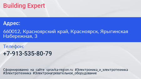 Building Expert по адресу 660012, Красноярский край, Красноярск, Ярыгинская Набережная, 3 в дальнейшем Организация, размещена в следующих категориях: