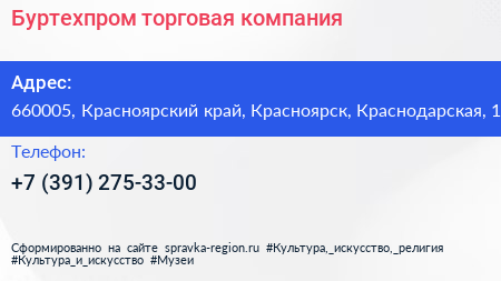 Буртехпром, торговая компания по адресу 660005, Красноярский край, Красноярск, Краснодарская, 1 в дальнейшем Организация, размещена в следующих категориях: