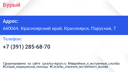 Бурый по адресу 660064, Красноярский край, Красноярск, Парусная, 7 в дальнейшем Организация, размещена в следующих категориях:
